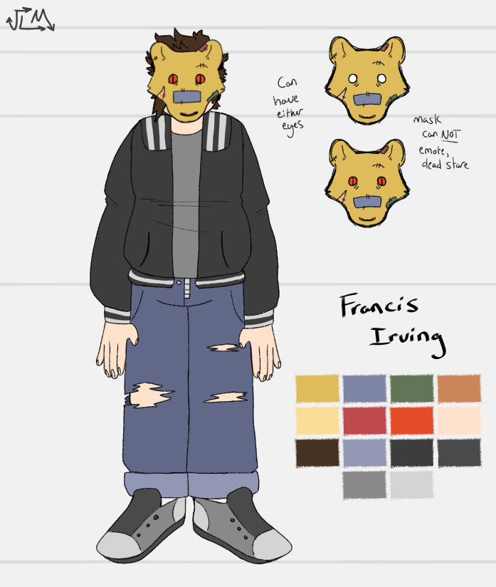 | Name Origin | Frankie is short from Francis, inspired by the song Francis Forever by Mitski. The last name Irving is inspired by the cryptid Gef the Mongoose, particularly the family that discovered him. |