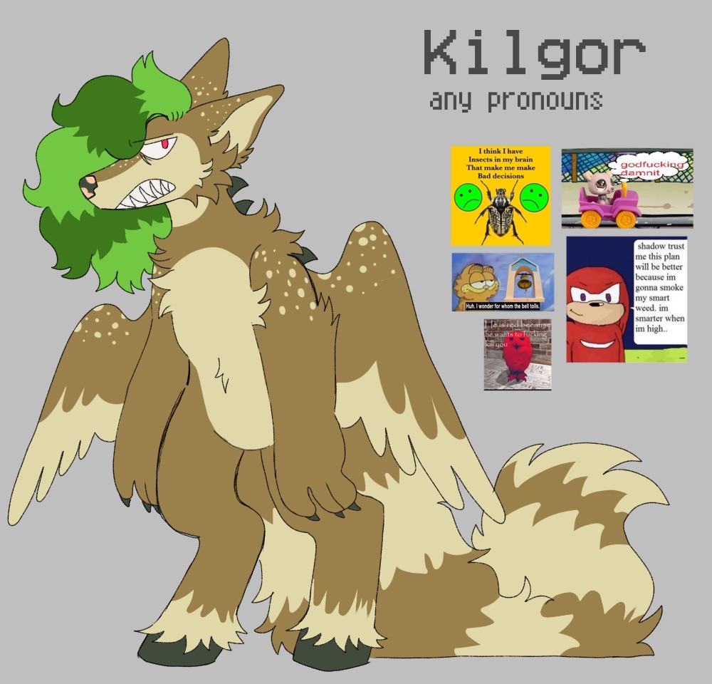 Kilgor represents my intrusive thoughts and the voices in my head that are mean to me. She is based on an olddd sona of mine.